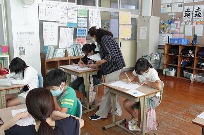 1014日(木)朝の時間に「赤ペン先生」を実施しました。地域の学習支援ボランティアの方のご協力により、子どもたちが解いた問題を添削し、分からない問題や間違えた問題を丁寧に教えていただきました。