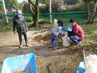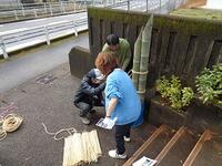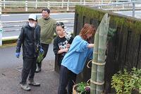 その後、日曜日の作業が早く進むように、竹を斜めに切ったり、3本セットの長さをそろえてくださいました。平日のお忙しい中、ありがとうございました。