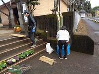 PTA副会長の紺家さんと山下さんが、日曜日に行う門松づくりに向けて、材料の竹きりに行ってくださいました。のこぎりとチェーンソーとを持って、いつも材料の竹を提供していただいている地域の方の竹山に出かけられました。しばらくして、長さ4mほどの竹を4本、軽トラに乗せてもどってこられました。