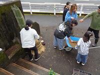 全校で、花の苗植え活動をしました。パンジーの苗を、黒いポットに植え付けました。低学年、中学年、高学年に分かれて3つの場所で、苗植えをしました。1年生は慣れない手つきではありましたが、大きな黒いポットを大事そうに抱えて、ていねいに作業していました。6年生は、植え付けたポットを校舎の軒下に運んで、並べてくれました。3月の卒業式、4月の入学式に向けてきれいな花が咲くように、弥五郎班(縦割り班)で分担してお世話をしていきます。