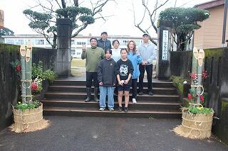 PTAで学校の正門に門松をつくり、飾りました。PTA役員さん、その子ども、永田先生親子、職員の参加をいただき、1時間ほどで完成することができました。立派なものができあがりました。ありがとうございました。