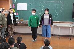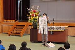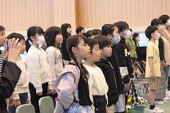 前回に引き続き、壇上で6年生が将来の抱負を発表する様子をお知らせします。また、別れの言葉が卒業式では行われますが、全校で一緒に歌う『旅立ちの日に』は、13日にも練習をしましたので、二部合唱の完成度が大変よくなっています。今回の予行練習では、感染症等の心配が予想されたので、6年生以外はマスクの着用をお願いし、換気もしながらの予行練習でした。6年生とともにつくり上げる最後の歌、そして別れの言葉です。卒業式が楽しみになってきました。