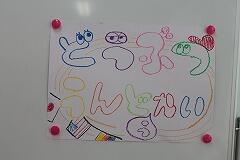 1年生教室には、オリジナルキャラクター「がんばりCちゃん」が生まれています。担任の納田先生の呼びかけで、1年生の子ども達がアイデアを出して一緒に考えたものです。生まれたてのCちゃんは、まだまだ小さいのですが、1年生のいろいろな場面でのがんばりが集まると、少しずつ大きくなっていくのだそうです。この前は、担任の先生が出張でお休みの時に力を合わせてしっかり過ごせたので、Cちゃんが成長したのだそうです。1年生が終わる頃には、どこまで成長しているのか楽しみですね。