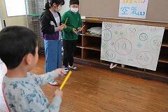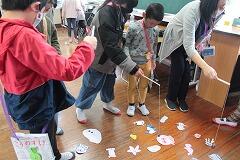 4年生が企画した理科お楽しみ会が19日(火)に開催されました。3年生になったら理科の学習がはじまる2年生を招待して、3・4年生で学習した理科の学習をもとにゲームコーナを作り、そのゲームを楽しみながら理科の学習に対する興味をもってほしいという活動です。4年生がこの企画を立ち上げ、空気や磁石、音、体積と重さなどを題材にした5つのゲームコーナーを制作しました。①まとをねらえ!空気ほう、②どうぶつうんどうかい(磁石)、③いっぱいすくえ さかなつり(磁石)、④クイズ王になれ 糸電話(音)、⑤ぴったりかんかん(体積と重さ)以上5つです。学習した内容を上手にゲームに反映されているところが素晴らしいです。2年生は、4年生から説明を受け、楽しみながらゲームに取り組んでいました。4年生のみなさん、2年生のためにありがとうございました。