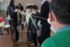 次に、全校児童で交流のためのゲームをしました。ゲームでは、指示された内容について、仲間を見つけたり集まったりするものでした。①集団登校の班で集まってください。②同じ誕生日の月の人と集まってください。というお題でした。意外とスムーズに集まることができて、見ていた先生方もビックリされていました。
