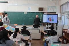 21日(木)は、今年度、外国語の学習が最終日になりました。各教室で学習の最後にALTの先生にお礼の言葉を伝えていました。5年生の教室では、1年間の学習をクイズ形式で振り返っていました。例えば、『世界で最も食べられている食材を5つあげましょう。』、『世界で最もたくさん競技されているスポーツを5つあげましょう。』などのように学習した世界の事柄について振り返っていました。ちなみに、第1位のスポーツはサッカーです。子どもたちは、『野球』と答えていたのですが、日本で盛んなスポーツが世界ではちがうことを再認識しました。学習の最後にALTの先生へ感謝のメッセージを書いた色紙を贈りました。外国語の学習を通して、よい出会いがあり、心あたたまるひとときでした。