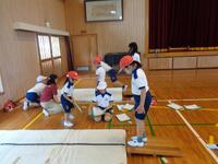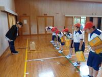 全校児童で体力テストをおこないました。本校は全校児童を学年縦割りの活動班5つに分けています。名前は、弥五郎班(やごろうはん)です。天候にも恵まれ、体育館と運動場の種目を無事に行うことができました。