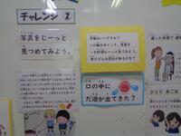 進め方は・・・・紙コップに入っている水を、口に含んで下を向いたまま、1分間ブクブクうがいをする。終わったら口に含んだ水を紙コップにもどしてティッシュで口元を拭く。途中で口から出したいときには1分間たっていなくても出してよい。うがい後30分間は、水を飲むことはしない。気分が悪くなった場合には、担任や保健の先生に伝える。・・・というものです。