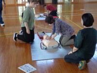 6月の水泳学習の前に、職員を対象にした救急救命法の講習会を開きました。都城北消防署から講師をお招きして、心肺蘇生法、AEDの使用の仕方について講習を受けました。職員を3名ずつのグループに分けて、それぞれが実践をしながら手順やタイミングの確認をしました。心肺蘇生は、緊張するとリズムがついつい速くなったり、おさえ方が中途半端になったりしてしまいました。