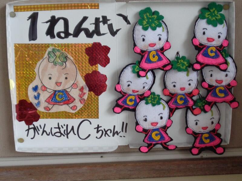 (児童の家族の方が、がんばりCちゃんのマスコットを手作りしてくださいました。ありがとうございます。)