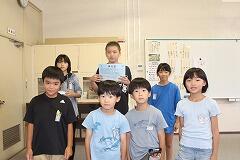 次に、養護教諭の先生から7月の目標『夏の病気を防ぎましょう』について、5つの「とる」で夏の健康をつかみとる話がありました。『5つのとる』とは、①朝ごはんをとる、②すいみんをとる、③りょう(涼)をとる、④すいぶんをとる、⑤じょうほうをとる、になります。⑤情報をとるとは、保健室の前に毎日掲示されている「暑さ指数(WBGT)」を見て、自分の行動を考えてほしいということでした。最後に、5月に行われた新体力テストで最高のA判定であった7名に判定書を渡し、これからも元気な体をめざして生活することを確認しました。