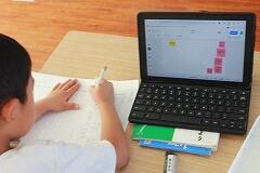 1年生が国語科の学習で、学校で育てているヒヤシンスの生長の様子を文章にして伝える活動を行っていました。これまでヒヤシンスの生長で気付いたことをGoogle Jamboadのメモ機能を使いながら黄色の付箋で書き出しました。その中から、特に伝えたいことを選び、付箋の色をピンクに変更しました。(画像3枚目)