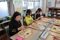 琴は、都城南小学校から借りてきたものでした。担任の穝所先生の「実物を使った体験をさせたい。」という強い希望が叶ったものでした。教科書を見ながら糸の番号と場所を確認して、親指で弾いていました。3分やったら次の人に交代して繰り返し練習しました。その結果、45分の授業の中で、「さくらさくら」の曲が弾けるようになった児童がいたようです。そばで見ている児童も一緒に手伝って、楽しい学習になりました。