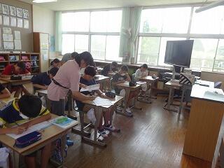 6月20日 今年度2回目の赤ペン先生が行われました。基礎学力の向上を目指し、朝の活動の時間に算数の問題に取り組ませています。今日も学習支援ボランティアの方々の協力を得ながら、頑張っていました。