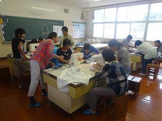 10月2日 6年生が家庭科の時間にミシンを使ってのエプロン作りに取り組みました。今回は、学習支援ボランティアの方々に来ていただき、ミシン縫い以外にも、ボビンの巻き付けやセッティングなども教えていただきました。