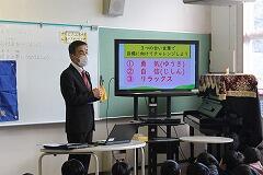 いよいよ1年のまとめの学期が始まりました。富っ子たちは、キーンと冷える朝に元気よく集団登校をしてきました。3学期の始業式では、6年生の代表児童がこれまでの自分の生活を振り返り、3学期の生活における3つの目標を発表しました。校長先生は、自分の決めた目標を実現するためには、『①勇気、②自信、③リラックス』の3つの言葉を意識していればどんなことも自分の力で乗り越えられるとアドラーの言葉を紹介しました。次に、能登半島地震を振り返り、NHKのアナウンサーがが強い口調で呼びかけをする理由について話し、みんなで『命を守る3つのポーズ』を学びました。詳しくは、子どもたちのタブレットに資料を送りましたので、お父さんお母さんなど大切な人と一緒に見てください。(金曜日はタブレットを持ち帰る日です。)最後に、1月の月目標『給食に感謝し、残さず食べよう』について給食担当の先生が話しました。特に、食事の前と後の「いただきます」(食べものの命をいただきます)、「ごちそうさま」(昔は走り回って食材を苦労しながら調達していたこと)の意味について、分かりやすく話しました。最後の写真は、『大谷翔平選手から寄贈されたグローブ』を紹介している様子です。子どもたちの様子は、明日紹介しますのでお楽しみに・・・。