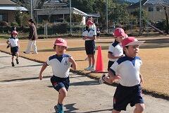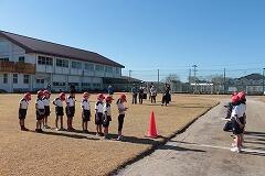 インフルエンザの罹患により、1年生の体調を整えるために延期していた持久走大会が、冬の穏やかな晴天のもと、1・2年生の合同体育の時間に開催されました。2年生5名が、開・閉会式の運営をしてくれました。1年生9名全員が参加でき、朝から子どもたちはワクワクしていました。スタート直後は、ペースが速かったですが、1周する間に自分のペースに落ち着くところは、自分の走り方がよく分かっていると感じました。運動場4周を走り終えた顔つきを見ると、自分のがんばりにすごく満足していることがよく分かりました。お忙しい中に保護者や家族の皆様が応援に来てくださり子どもたちは大満足だったと思います。1年生の富っ子が大切に育てられていると改めて感じました。みなさん、応援大変ありがとうございました。