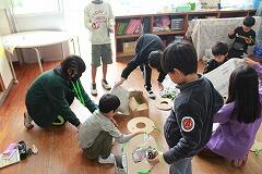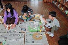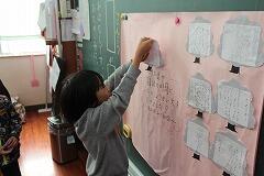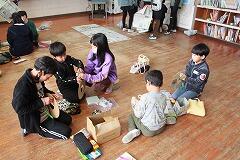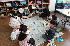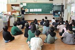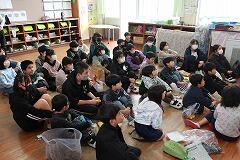 5・6年生が図工の学習でオリジナルの物語をつくりました。読者のターゲットを1年生とし、実際に読んであげて喜ばせたいというねらいのもと作成しました。今回は、4つのグループに分かれてできあがった紙芝居を読んであげる活動を紹介します。4つのグループが作成した紙芝居の題名は『みらいからやってきた こじエモンとタツ!』、『チョコポールのぎゃくしゅう~おかしを大事に~』、『家族のきずな』、『おにぎり物語~おかずは何がいい~?』になります。帰りの会の時間を利用して読み聞かせをしました。1年生は、5・6年生が作った話を興味津々な様子で聞いていました。5・6年生もこれまでに班ごとに読む練習を行い、どの班も読み終えた後には、達成感が満ちあふれていました。最後に、1年生から「ありがとうございました。」と心のこもった言葉がかけられていました。