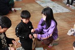 1・2年生は、図工の時間等で5・6年生のお手伝いをもらいながら、楽しくリースづくりをしました。事前に家庭で準備した材料も使いながらボンドで上手に付けていました。大きな松ぼっくりをおじいちゃんとさがした男の子は、みんなにも分けてあげるとうれしそうに話してくれました。リースづくりの中にあたたかい思いが込められているのを感じました。それぞれに工夫を凝らした素敵な飾りができました。学校で鑑賞した後に、家庭に持ち帰るようです。それぞれの家庭でリースづくりの話題が花開きそうです。