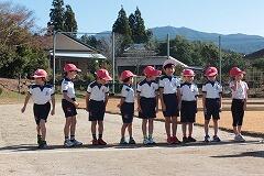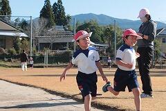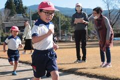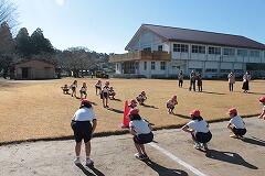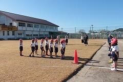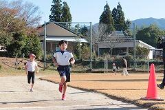 インフルエンザの罹患により、1年生の体調を整えるために延期していた持久走大会が、冬の穏やかな晴天のもと、1・2年生の合同体育の時間に開催されました。2年生5名が、開・閉会式の運営をしてくれました。1年生9名全員が参加でき、朝から子どもたちはワクワクしていました。スタート直後は、ペースが速かったですが、1周する間に自分のペースに落ち着くところは、自分の走り方がよく分かっていると感じました。運動場4周を走り終えた顔つきを見ると、自分のがんばりにすごく満足していることがよく分かりました。お忙しい中に保護者や家族の皆様が応援に来てくださり子どもたちは大満足だったと思います。1年生の富っ子が大切に育てられていると改めて感じました。みなさん、応援大変ありがとうございました。