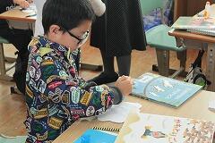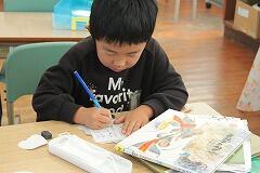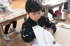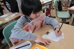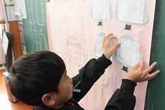国語の学習『てがみで しらせよう』において、最近読んだおすすめの本を手紙で知らせる学習をしていました。特に、1年生は手紙の相手を富吉小のお兄さんのお姉さんに決めて、語と語や文と文との続き方に注意しながら、内容のまとまりが分かるように書き表し方を工夫していました。初めにお手紙の用紙を切り、伝えたい絵本のお手紙を書き始めました。できあがったお手紙は、自分で読み直したり、先生や友達に読んでもらったりしながらよりよいものになっていきました。みんなのお手紙を大きな用紙に貼り、廊下におすすめの本と一緒に掲示をしました。できあがった紹介コーナーを見ながらみんなで喜んでいました。