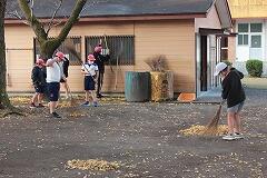 朝登校した後に落ち葉集めのボランティア活動を積極的に取り組んでいました。たくさんの富っ子たちが、自主的に参加してくれることもあり、代表委員会で『学校をピカピカにしよう』という議題で話し合いをしました。その結果、本校には縦割りの5つの『弥五郎班』を活用してボランティア活動をすることになりました。第1弾としては、今行っている落ち葉集めを引き続き弥五郎班で行い、参加した児童は終わった後に掲示してあるツリーにシールを貼り、飾り付けをしていくというものです。ご覧のように、終わった後に各班のツリーに飾り付けのシールが増えてきています。全校で楽しみながらボランティア活動に取り組んでいます。