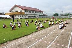 全校そろっての1回目の運動会の応援練習が行われました。事前に団長を中心とした応援練習が進んでいたため、一つ一つ応援の種類を伝える練習でした。声を出すタイミングなど1年生にわかりやすく伝えていました。赤団・白団とも繰り返し練習することで、応援の一体感が高まってきています。大きな声を出すことにためらいがあるようで、これから少しずつ応援の迫力が出てくると思います。