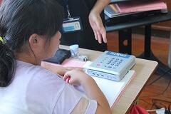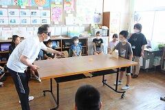3・4年生総合的な学習の時間『みんなが幸せな世の中に』3回目の今回は、視覚障がいのある方やそのガイドヘルパーさんに実際に来ていただいて、直接お話を伺う学習でした。視覚障がいの方から普段の生活で使っていらっしゃる道具を見せていただいたり、触らせていただいたりすることもできました。例えば、点字のお手紙、ニュースを音声情報にしてCDで聴くプレイヤー、時間を音声で知らせる腕時計です。また、お弁当を食べる時にガイドヘルパーの方が、お弁当箱のどの位置にどのような食材があるのかを知らせる方法などです。最後に、障がい者卓球(サウンドテーブルテニス)も体験させていただきました。「障がいがある人もない人も みんな同じように生きている。」ということに気付けた学習でした。