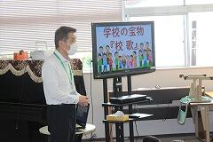 7月の全校朝会についてお知らせします。校長先生から『学校の宝物』についてのお話がありました。学校にはたくさんの宝物がありますが、その中でも富吉小学校を卒業した方々から受け継がれている校歌は、入学式や卒業式の時に来賓や保護者のみなさんと一緒に歌うことで学校を愛する思いを共有できます。校歌の作詞をしていただいた長嶺宏様が、校歌に対する思いを約65年前に書かれた手紙とともに紹介しました。その手紙には、1番は『イチイの木とやまばと』、2番は『さくら』、3番は『子どもたち』というテーマをもとに作詞されています。手紙に書かれている長嶺様の思いを子どもたちに伝え、強く明るく美しい心と体をもち続け、学校を愛する思いを引き続き受け継いでいこうと話されました。