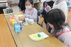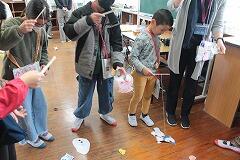 4年生が企画した理科お楽しみ会が19日(火)に開催されました。3年生になったら理科の学習がはじまる2年生を招待して、3・4年生で学習した理科の学習をもとにゲームコーナを作り、そのゲームを楽しみながら理科の学習に対する興味をもってほしいという活動です。4年生がこの企画を立ち上げ、空気や磁石、音、体積と重さなどを題材にした5つのゲームコーナーを制作しました。①まとをねらえ!空気ほう、②どうぶつうんどうかい(磁石)、③いっぱいすくえ さかなつり(磁石)、④クイズ王になれ 糸電話(音)、⑤ぴったりかんかん(体積と重さ)以上5つです。学習した内容を上手にゲームに反映されているところが素晴らしいです。2年生は、4年生から説明を受け、楽しみながらゲームに取り組んでいました。4年生のみなさん、2年生のためにありがとうございました。