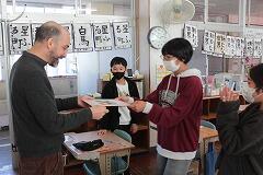 21日(木)は、今年度、外国語の学習が最終日になりました。各教室で学習の最後にALTの先生にお礼の言葉を伝えていました。5年生の教室では、1年間の学習をクイズ形式で振り返っていました。例えば、『世界で最も食べられている食材を5つあげましょう。』、『世界で最もたくさん競技されているスポーツを5つあげましょう。』などのように学習した世界の事柄について振り返っていました。ちなみに、第1位のスポーツはサッカーです。子どもたちは、『野球』と答えていたのですが、日本で盛んなスポーツが世界ではちがうことを再認識しました。学習の最後にALTの先生へ感謝のメッセージを書いた色紙を贈りました。外国語の学習を通して、よい出会いがあり、心あたたまるひとときでした。