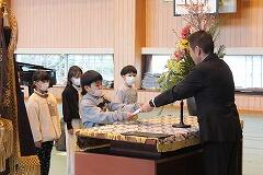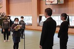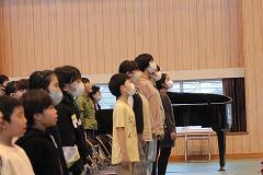 前回に引き続き、壇上で6年生が将来の抱負を発表する様子をお知らせします。また、別れの言葉が卒業式では行われますが、全校で一緒に歌う『旅立ちの日に』は、13日にも練習をしましたので、二部合唱の完成度が大変よくなっています。今回の予行練習では、感染症等の心配が予想されたので、6年生以外はマスクの着用をお願いし、換気もしながらの予行練習でした。6年生とともにつくり上げる最後の歌、そして別れの言葉です。卒業式が楽しみになってきました。