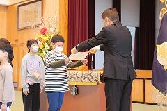 1~5年生の修了式が行われました。初めに代表児童による1年間の振り返りの発表がありました。自分自身の1年を振り返り、今年度できるようになったこと2つのことを自信あふれる表情で発表しました。次に、各学年の代表児童に修了証が授与されました。満足感の満ちあふれる態度が全ての代表児童からうかがえました。富吉小のスローガン『学びいっぱい 思いやりいっぱい 元気いっぱい』について全児童が1年間がんばったことを称賛し、次の学年での目標について話をしました。各学年ごとに多読賞を贈りました。富っ子のうれしそうな表情をご覧ください。最後に、春休み中の生活について『はるやすみ』の言葉に合わせて、お話をしていただきました。「は・・・早めに帰ろう!帰宅時刻は5時」 「る・・・ルールを守る 富っ子 よい子」 「や・・・約束のキーワード 火・水・車・人・お金」 「す・・・スマホやゲーム 使いすぎには気を付けて」 「み・・・みんな元気で3/28と4/8にまた会おう!」 富っ子の心にしっかりと残りました。
