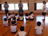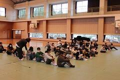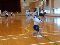 今回はその1回目。1.2年生の児童は、指導者の説明や指示を聞きながら気持ちよく体を動かして楽しい時間になりました。あっという間の2時間で、どの子も楽しかったと満足そうにしていました。時間の終わりには、まとめとして体育館で練習したことを、運動場に出て、みんなで表現しました。
