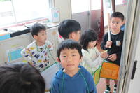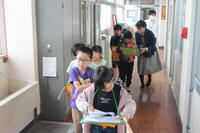 2年生と1年生が生活科の学習を一緒にしました。今回は、学校探検ということで2年生が1年生をつれて校内を案内するというものでした。2年生の児童は、各教室入口で入室のあいさつを上手にして、立派に案内することができていました。各教室入り口には、担任の先生がひらがなで書いた表示を準備してくださっていたので、1年生も文字を確認しながら探検をすることができました。