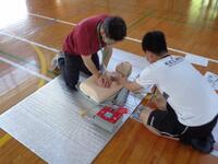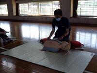 6月の水泳学習の前に、職員を対象にした救急救命法の講習会を開きました。都城北消防署から講師をお招きして、心肺蘇生法、AEDの使用の仕方について講習を受けました。職員を3名ずつのグループに分けて、それぞれが実践をしながら手順やタイミングの確認をしました。心肺蘇生は、緊張するとリズムがついつい速くなったり、おさえ方が中途半端になったりしてしまいました。