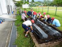 午後に児童が集団下校する頃には、学校まわりが大変きれいになっていました。熱い中の作業、お疲れさまでした。ありがとうございました。