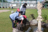 今年度の入り2回目の来校になりました。職員の徳留さん、脇屋敷さんが来校され、打ち合わせをした後、作業に取りかかられました。今回は、学校のまわりの除草(草刈り)作業と校庭に集めてあった落ち葉などの搬出でした。