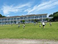 毎月第1週に1日だけ、朝の時間に「全校遊びの時間」が設定されています。朝の健康観察が終わったら、運動場に出て、子ども達はそれぞれの遊びを始めます。サッカー、おにごっこ(けいどろ)、遊具遊びなどやりたい遊びに集まって体を動かしていました。先生方も遊びに参加して、一緒に動き回っています。