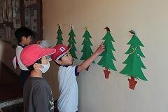 朝登校した後に落ち葉集めのボランティア活動を積極的に取り組んでいました。たくさんの富っ子たちが、自主的に参加してくれることもあり、代表委員会で『学校をピカピカにしよう』という議題で話し合いをしました。その結果、本校には縦割りの5つの『弥五郎班』を活用してボランティア活動をすることになりました。第1弾としては、今行っている落ち葉集めを引き続き弥五郎班で行い、参加した児童は終わった後に掲示してあるツリーにシールを貼り、飾り付けをしていくというものです。ご覧のように、終わった後に各班のツリーに飾り付けのシールが増えてきています。全校で楽しみながらボランティア活動に取り組んでいます。