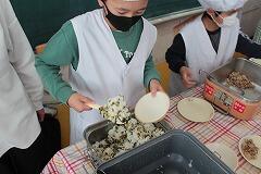 7日(木)の給食は、以前5・6年生が総合的な学習の時間に取り組んでいた『弥五郎丼』が登場しました。子どもたちは、この日を今か今かと楽しみにしていました。先日は、山之口給食センターの栄養教諭の先生からアドバイスをいただいた授業を紹介しました。(1月22日の記事をご覧ください。)町おこしの一貫として学習している弥五郎丼づくりでは、山之口の食材を用いて白飯と炒めた豚肉の上に、様々な具材を合わせていきながら、美味しく、コストがかからない組み合わせを考えました。「シンプルなほうがおいしい」「ウインナーの味が豚肉の味を消している」「コーンの甘さはないほうがいい」「油っこい豚肉が、高菜を入れることで油っこさがなくなる」など、試行錯誤しながらレシピを考えてきました。そのレシピをもとに給食として登場したことで、5・6年生だけでなく全校児童が大変喜んでいました。また、これからの活動に思いを巡らせている5・6年生でした。