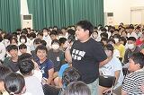 山之口地区まちづくり協議会主催の講演会が行われました。毎年地区内の小学校5,6年生と中学生が集まって、講演会に参加します。今年度は、環境教育インストラクターのマリカ先生とせーじ先生を講師とした講演でした。お二人は、