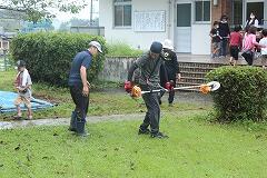 今日は、PTA奉仕作業が午前7時から行われました。小雨が降ったりやんだりする中の作業でした。子どもたちと保護者のみなさんは、一生懸命運動場の整備(トラックの草抜きや運動場の外側の草刈り)をしていただきまして、見違えるような運動場になりました。環境保体委員会のみなさんによる運営で、時間よりも早めに作業が終了することができました。さらに、28日(月)にレーキの使用により、でこぼこになったトラックを平らにならしていただきました。明日子どもたちが運動場を見た時には、きっと思わず走りたくなると思います。保護者の皆様、大変ありがとうございました。