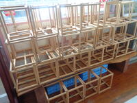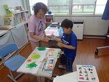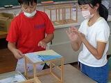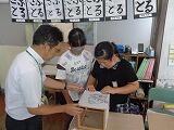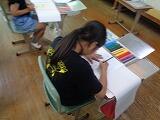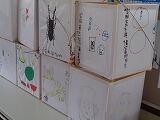 学校そばの的野正八幡宮の宮司(日髙様)が、灯籠の箱(木の骨組み)を持ってこられました。学年ごとに時間を見つけて、少しずつ灯籠の側面に貼り付ける絵を描きました。描いた絵を、木枠にのりをつけて、協力して貼っていきました。中学年児童は最初から最後まで自分達で作業をしました。高学年児童は、作業する時に低学年児童の分も一緒に貼り付けしてくれました。7月25日には、境内に飾られるそうです。