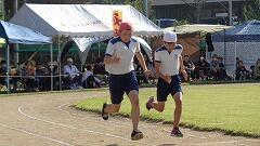 4年ぶりに富吉小・上富吉地域合同運動会が、秋晴れのもと開催されました。前日は、天気がよくない状態でこのまま雨が長引いたら、当日の運営に支障が出てくると心配しましたが、そんな心配を感じさせない晴天となり4年ぶりの地区との合同運動会を祝っているかのようでした。入場も子どもたちの隣に地区の方が整列した状態ではじまり、子どもたちの表情も一段と引き締まる感じがしました。ご覧のようにリーダーの応援から始まりました。その後、5・6年生の力強い徒走、1~4年生の玉入れでは途中でマツケンサンバを踊り会場を和ませました。