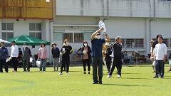 ご覧のように地区の競技は、昔懐かしいリム転がしをする『幼いころ』、普段の生活でもゲートボールを楽しんでいらっしゃる『ナイスイン』が行われました。『幼いころ』では、自転車のリムを上手に扱い、スピードにのってぐんぐん加速してゴールされる方もいらっしゃいました。また、『ナイスイン』では、スティックを上手に扱い、ホールインワンを出す方もいらっしゃり、楽しみながら運動を子どもたちと行うことができました。富吉小の運動場に笑い声や笑顔があふれるひとときとなりました。参加されました地域の皆様方 ありがとうございました。