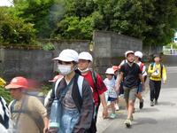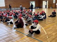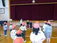 5年生が宿泊学習に出かけていたので、1~4年、6年の児童でまとまって、あじさい公園に遠足に出かけました。遠足に出かける前に、まず、6年生が企画した全校遊びを行いました。体育館の中で動き回って楽しく過ごしました。