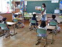 この訓練は、非常時(大雨や地震などの自然災害、事件など)を想定して、児童を安全に保護者に引き渡すものです。訓練については、保護者の車の進路、引き渡しに向けての職員の動き、児童の動きなど、事前に全体的な流れを検討し、5月に入ってからは、各家庭に「引き渡しカード」の提出をお願いし、準備してきました。