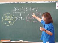 進め方は・・・・紙コップに入っている水を、口に含んで下を向いたまま、1分間ブクブクうがいをする。終わったら口に含んだ水を紙コップにもどしてティッシュで口元を拭く。途中で口から出したいときには1分間たっていなくても出してよい。うがい後30分間は、水を飲むことはしない。気分が悪くなった場合には、担任や保健の先生に伝える。・・・というものです。