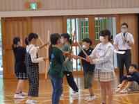 今回は、教頭先生の指導のもと、6名が一組になって踊りの隊形をつくりました。
